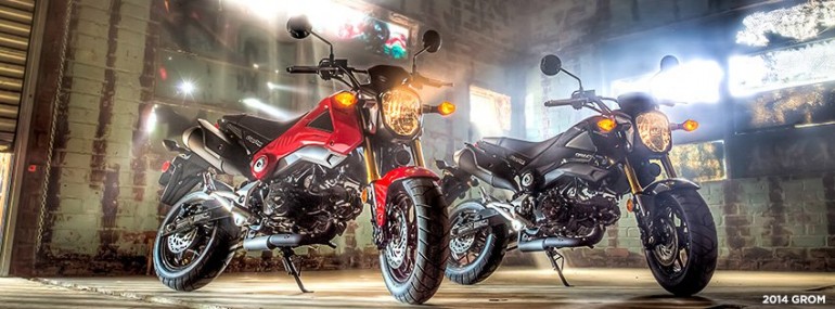 Honda’s 2014 Grom™ is a fresh, new way to add some fun, practicality, independence and style to your life. Fun: This new machine is a blast to ride, offering all the excitement of a full-sized motorcycle but in a package that just about anyone old enough to have a license can handle. Practical: The Grom’s thrifty Honda engine means you can run it on pocket change, and you can park it just about anywhere too.